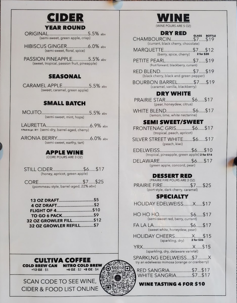 Glacial Till Cider House & Tasting Room, located in Ashland, Nebraska, offers a delightful experience for cider enthusiasts. This charming venue features an inviting rooftop space and a welcoming atmosphere, perfect for relaxing with friends. Guests can explore a remarkable selection of unique, handcrafted ciders alongside an impressive wine list. The artisanal food offerings, including shareable charcuterie boards and delectable savory options like loaded sweet potatoes, elevate the tasting experience. The attentive staff and commitment to quality service stress the importance of hospitality, making Glacial Till a must-visit destination for both locals and travelers seeking delicious flavors and a cozy ambiance.