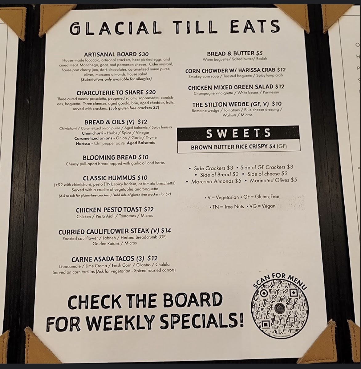 Another noteworthy dish is the loaded sweet potato, praised for its combination of flavors and freshness. Guests have lauded their time spent on the picturesque patio, savoring not just food, but also good company and the ambiance that Glacial Till cultivates.