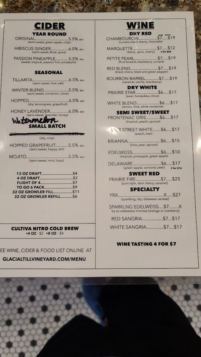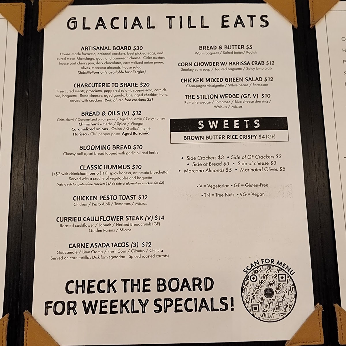 “ Glacial Till is one of our favorite spots! We love trying the variety of ciders. They’re always unique and delicious. The patio is the perfect place to relax, and the charcuterie board is fantastic. A great place to unwind and enjoy good company! ”